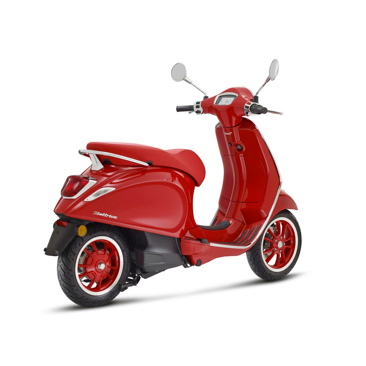 (VESPA PRIMAVERA)RED Elettrica markeert een nieuw hoofdstuk in een verhaal dat schoonheid, enthousiasme en een gevoel van solidariteit combineert. Het is uniek in zijn categorie, combineert de klassieke stijl met innovatie en creëert een visuele impact met zijn levendige rode all-over livery die hem absoluut onmiskenbaar maakt. Van de carrosserie tot het comfortabele zadel in zacht Nubuck en de vijfspaaks velgen, de kleur RED accentueert het silhouet van de scooter voor een look die iconischer is dan ooit.