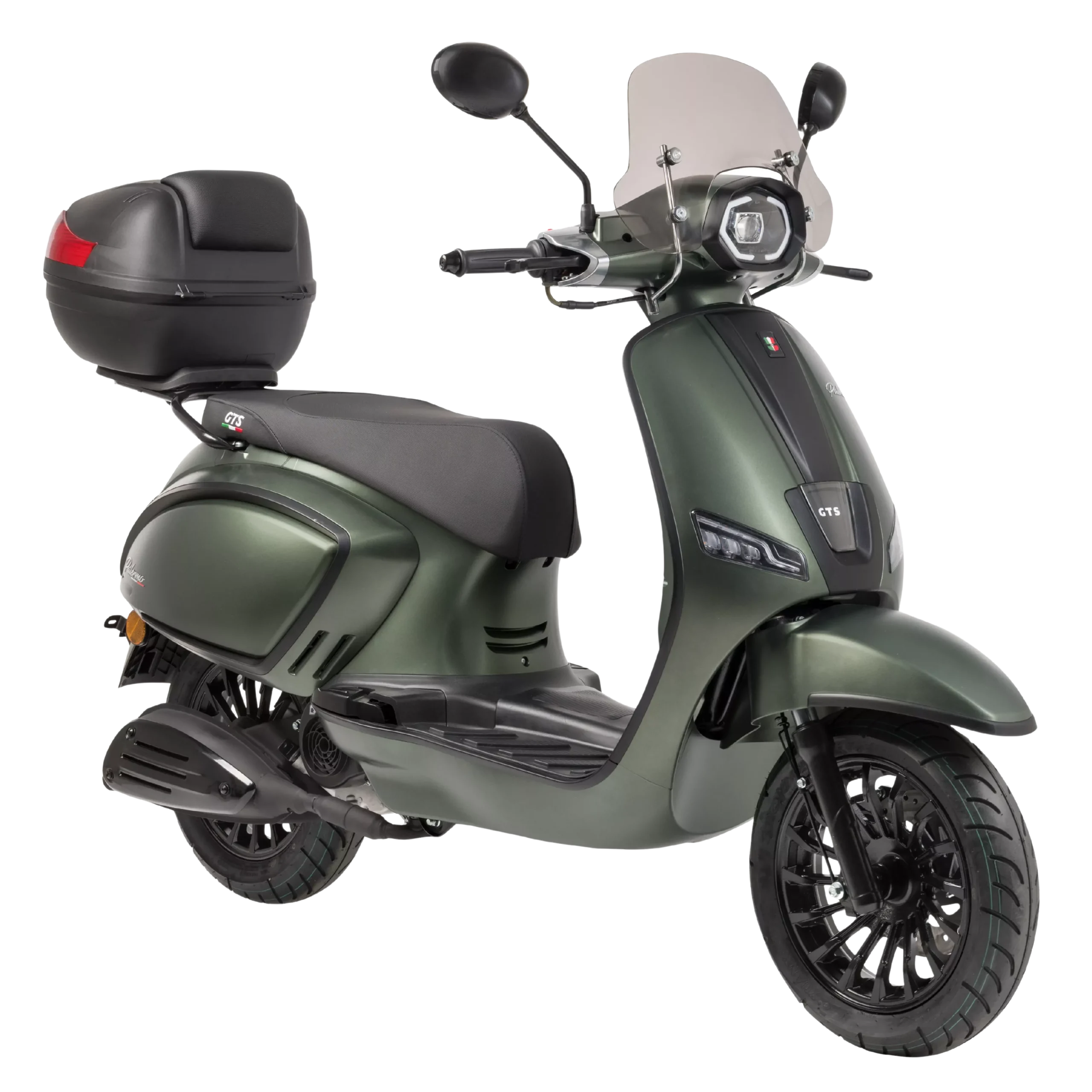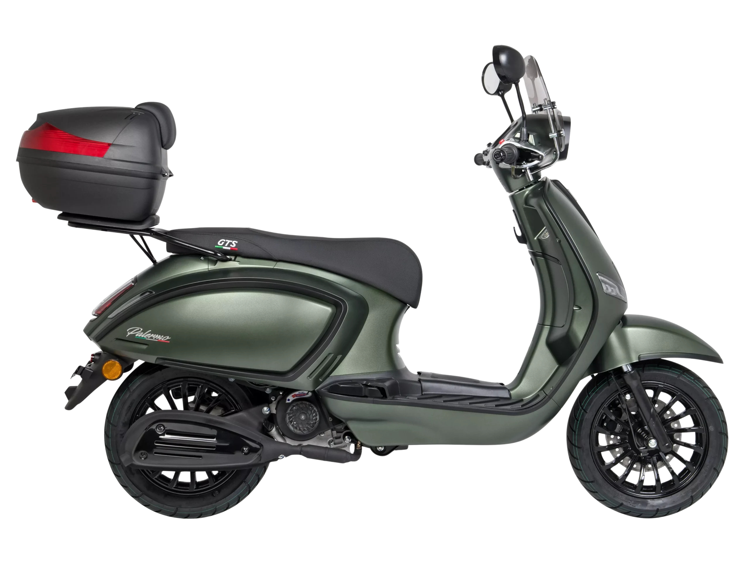 De GTS Palermo Exclusive is de perfecte mix van stijl en comfort. Met zijn klassieke retrodesign, hoogwaardige afwerking en moderne techniek biedt deze scooter alles wat je zoekt in een no-nonsense mobiliteitsoplossing. De exclusieve details en luxe zadel zorgen voor extra uitstraling, terwijl het soepele rijgedrag ideaal is voor dagelijks gebruik in de stad of daarbuiten.
